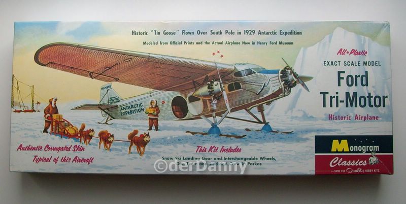 Ford Trimotor ist ein dreimotoriges Passagierflugzeug des Flugzeugherstellers Ford und wurde in den Jahren von 1926 bis 1933 produziert. Basis der Entwicklung war die von William B. Stout entwickelte einmotorige, mit einem Liberty-Motor ausgestattete Ford 2-AT Pullmann, aus der die relativ erfolglose Ford 3-ATentstand. Diese übernahm das Konzept des freitragenden Hochdeckers mit Metallbeplankung in Wellblech, erhielt aber drei Sternmotoren, die jedoch vorerst unverkleidet waren. Die Ford 4-AT, die ab Juni 1926 im Dienst war, wurde mit Wright-J-4-Whirlwind Motoren von je 202 PS ausgestattet. Davon wurden 82 Stück gebaut. Diese konnten bei einer zweiköpfigen Besatzung bis zu 12 Passagiere aufnehmen. Vom Nachfolger, dem Ford-5-AT-Tri-Motor wurden 112 Stück gebaut. Hierbei wurden die Spannweite um 112 cm verlängert sowie stärkere Motoren eingebaut. Bis zum Ende der Produktion gab es bis zum Modell A-13 noch weitere Versionen. Das erfolgreiche Flugzeug erhielt schnell den Spitznamen „Tin-Goose“ (Blechgans) oder (in Anlehnung an das Ford Mdell T) „Tin Lizzie“ (Blech-Lizzie). Einige Piloten berichteten von sehr gutmütigen Flugeigenschaften, sodass die Maschine im Notfall auch problemlos mit nur zwei Motoren fliegen konnte. Außerdem war es robust, außerordentlich vielseitig und so langlebig, dass einige Exemplare noch heute fliegen. (Quelle: Wiki)