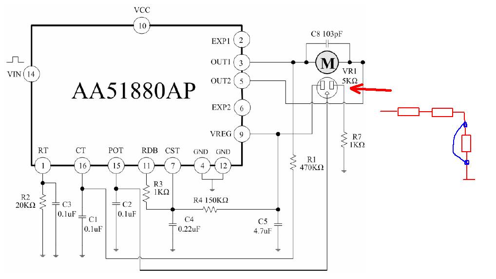 Prinzipiell gilt aber für alle mir bekannten Servo-Motor-Controller-Chips folgende Prinzipschaltung: