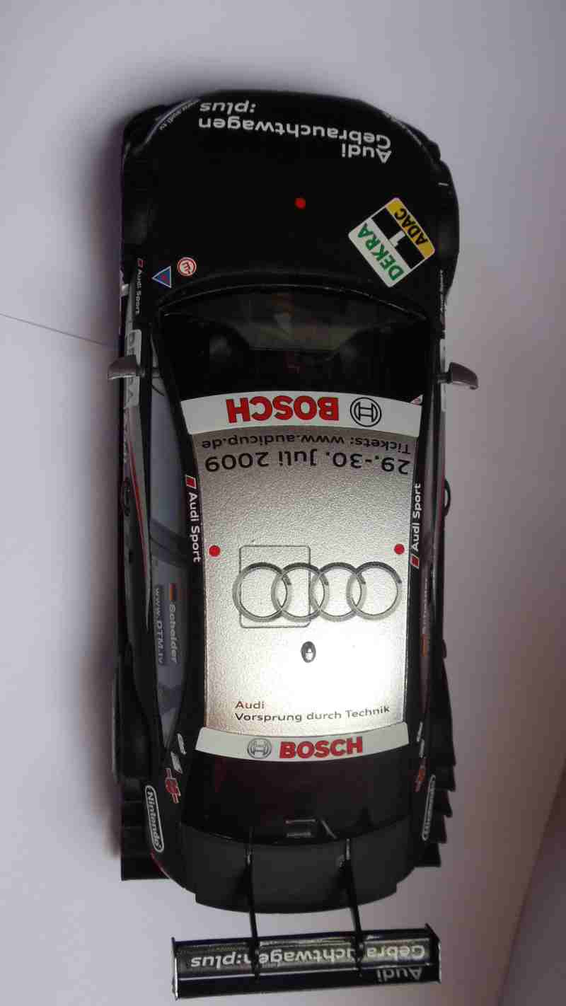 Es handelt sich um den Revellbausatz vom Audi A4 DTM 2009. Für die Lackierung habe ich Tamiya, Dupli-Color, K-Lack verwendet.