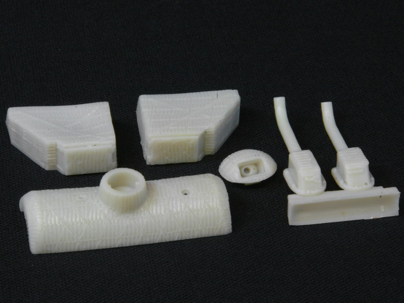 - Geschützblende, Staukästen und Auspuffanlage als Resinteile.