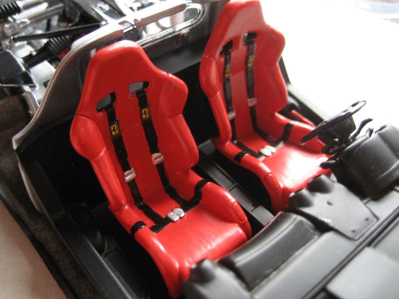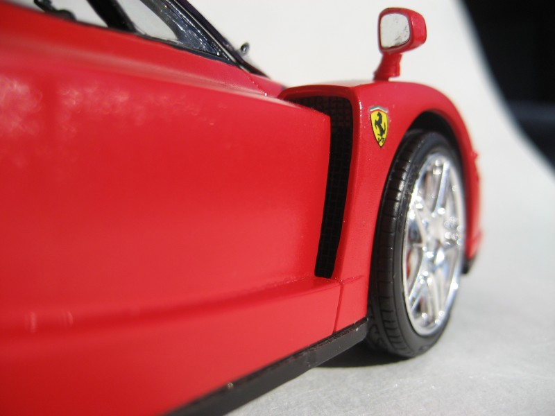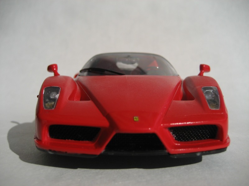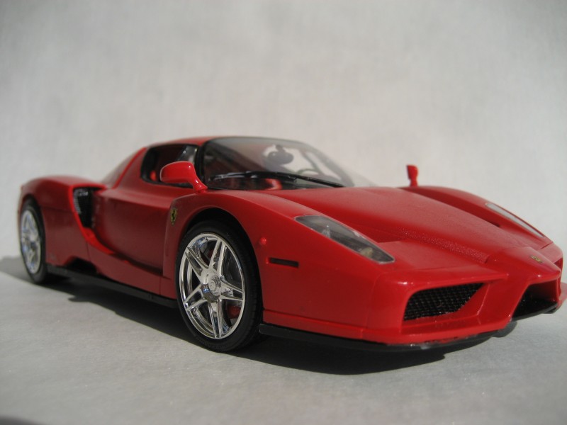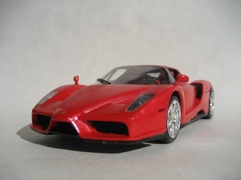 das nächste Modell von mir ist der Ferrari Enzo von Revell. Was mich beim Bau ein bisien Gestört hat war die passgenauigkeit der Motothaube. Ich habe gebogen, geschoben und versucht gradezurücken, hat aber nicht ganz funktioniert. Auf den Bildern kommt das ganze allerdings schlimmer rüber, als es in Wirklichkeit ist. Lackiert wurde wieder mit Farbe aus der Dose. Beim Bildermachen ist mir aufgefallen, dass ich die Blinker an der Seite total vergessen habe. Auch die Auspuffinnenseite habe ich vergessen zu schwärzen. Wurde aber beides in der zwischenzeit behoben.