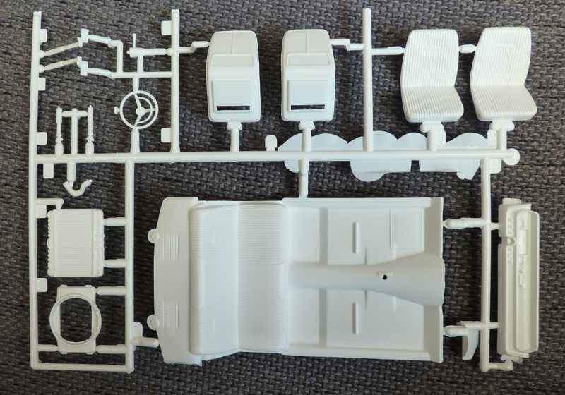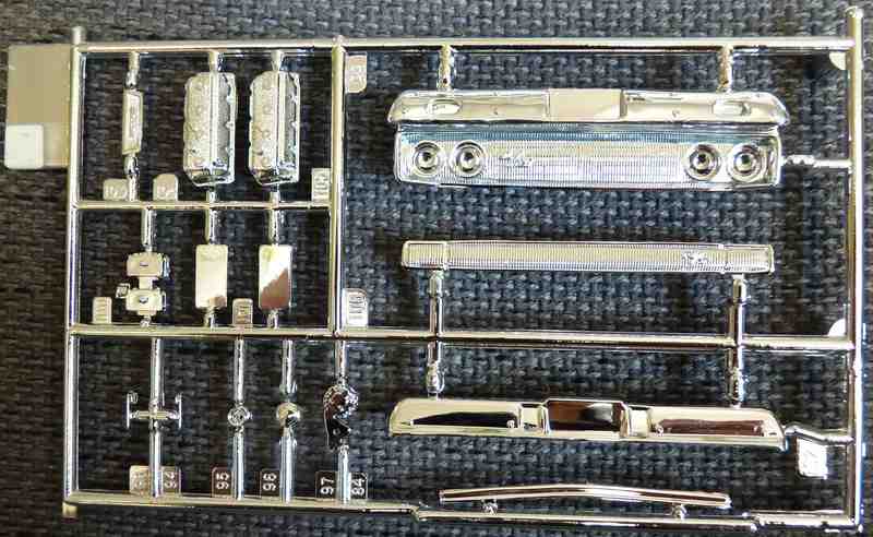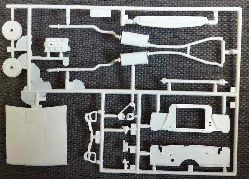 Spritzlinge: 1 Karosserie, 5 weiße, 1 transparent, 2 chrom, Reifen