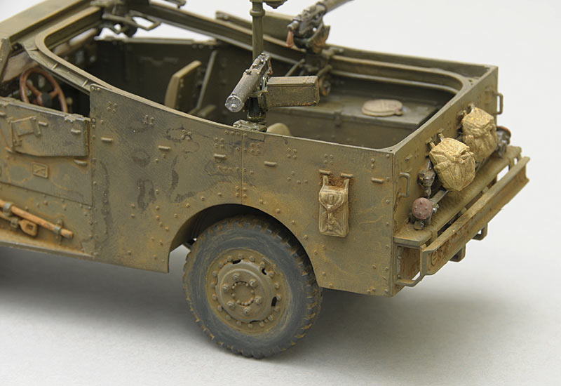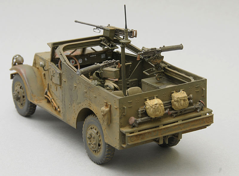 Der Bausatz, den HobbyBoss 2010 auf den Markt gebracht hat, ist sehr gut und überaus zufriedenstellend. Die Qualität der Spritzlinge überzeugt, die Detaillierung ist überwiegend sehr gut. Der Bau macht keinerlei Probleme, die Teile sind nicht überambitioniert klein, alles fügt sich nach kurzer Zeit zusammen. HobbyBoss hat ein empfehlenswertes Modell geschaffen. Dem Bausatz liegen Decals für zwei Varianten bei, eine neuseeländische Einheit und Abzeichen für ein Fahrzeug der US Army aus den Vorkriegszeiten. Ich habe mich für das US-Modell entschieden. Die ungewöhnlichen Hoheitszeichen - weißer Stern mit blauem Punkt in rotem Kreisfeld, also genau andersrum als die übliche Kokarde - schmücken das Modell. Sie sind nach meinen Recherchen von der 2nd Armoured Division bei Einsatzübungen verwendet worden.