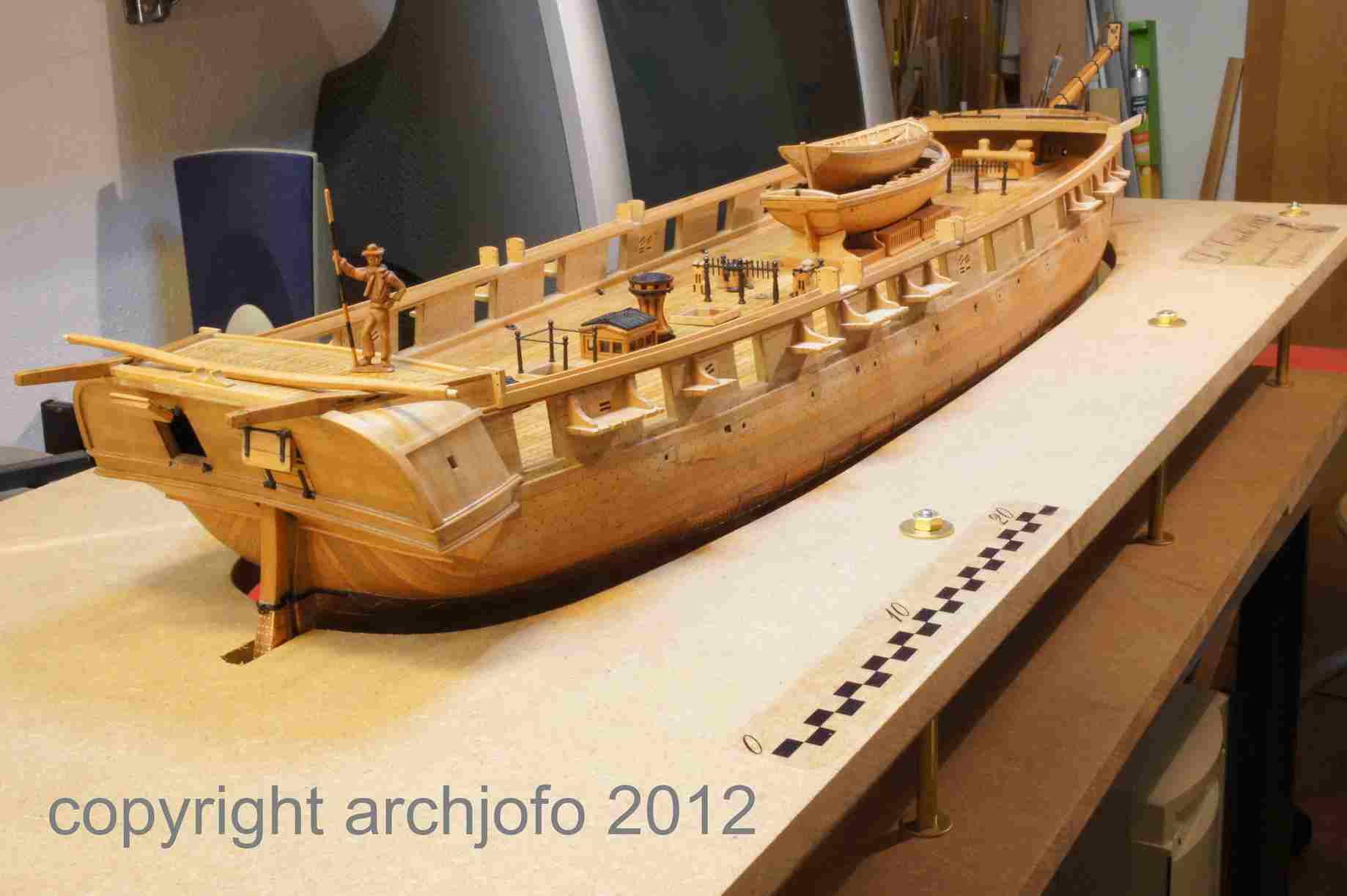 Die Abstände der Speitgatts der Korvette nehmen zur Schiffsmitte hin ab; liegen dort also enger zusammen. Auf Grund des Verlaufs des Oberdecks sammelt sich zwangsläufig schiffsmittig das meiste Wasser, dass dann schließlich abgeführt werden muss.