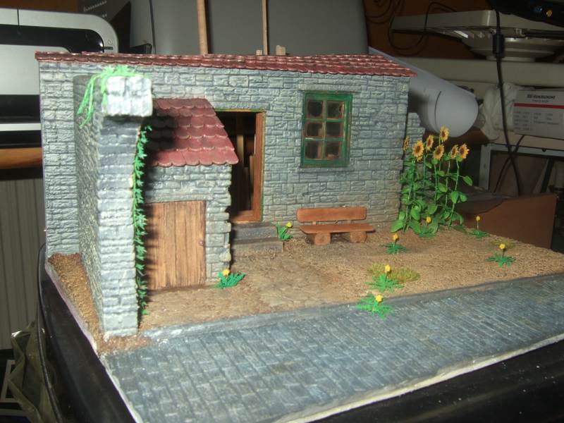 Das Haus ist kein Plastikbausatz sonder nachgebildet von den Miniart Bausatz. Boden und Wände sind aus Depron und Fenster und die Türen aus Balsaholz.