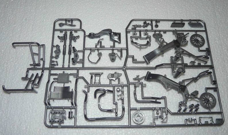 Besonderheiten: V4 Ovalkolbenmotor, das Original gab´s, glaube ich nur 300 mal zur Kleinigkeit von 100.000 (!) DM. Das Modell kann mit klarer Verkleidungsunterseite gebaut werden, so dass der Blick auf diesen einmaligen Motor frei bleibt. Außerdem Carbondecals und entsprechene Struktur der Spritzgußteile, Einarmschwinge hinten......