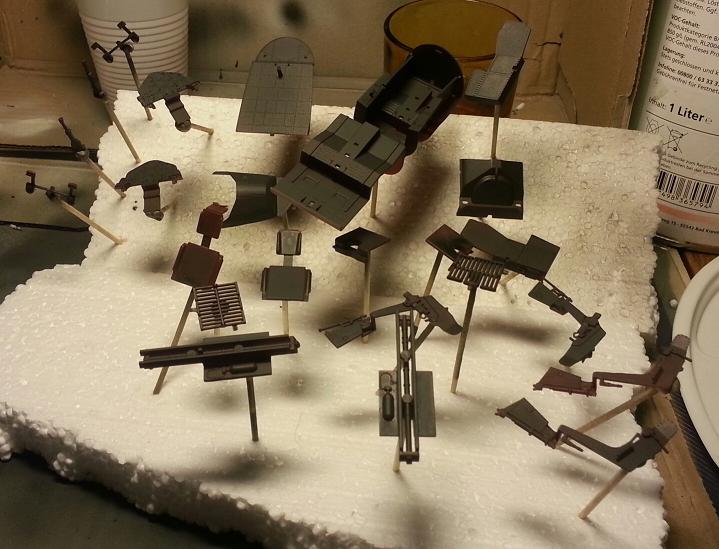) hab ich schwarz grundiert und anschließend mit Revell´s 80 (Silber) trockengebürstet, bis mir der Kontrast gefiel.