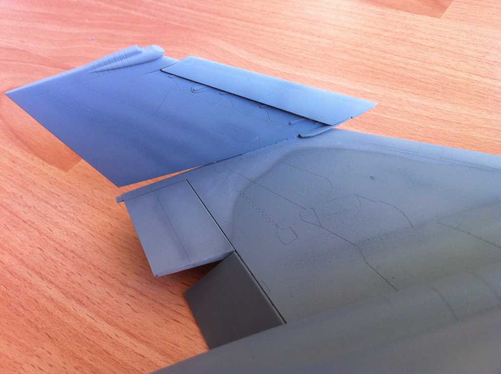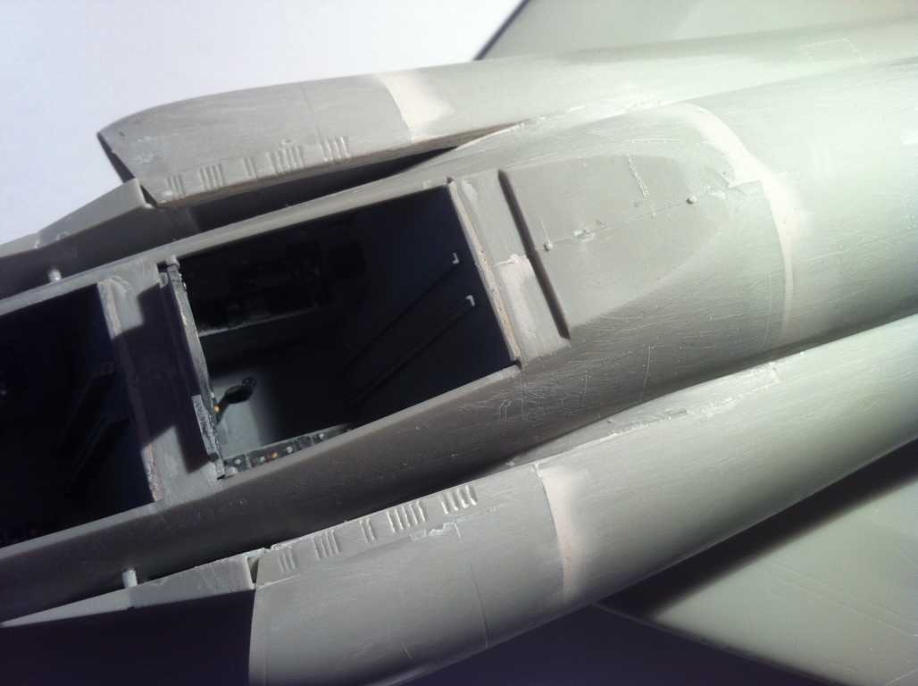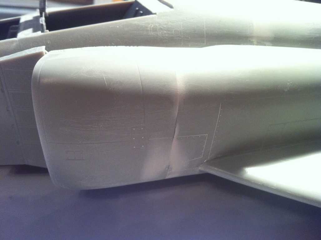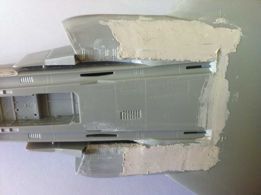 Des weiteren wurde das Radom verschliffen und gespachtelt, sowie schon mal eine Lage Surface Primer von Tamiya reingesprüht.