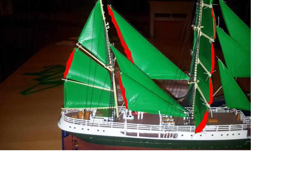 Was meint ihr mit zuviel Plastik? Tut mir leid ich bin bei Segelschiffen totaler Laie. Ich denke ich werde aber nichts mehr ändern, es sei denn ihr seht das als totale Katastrophe an, die Knoten sind schon geklebt, wenn ich die Segel runtermache wird sicher eingies kaputtgehen am Segel, aber Danke für die Hinweise.