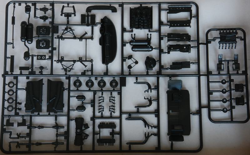 . Die Chromteile haben einen angenehmen Glanz, so daß man auf entchromen und neuverchromen durchaus verzichten kann. Die Radaufnahme ist im Gegensatz zu Revell so konstuiert, daß man freien Durchblick durch die Felgen/Radkombination hat