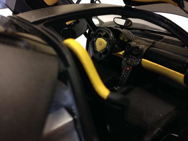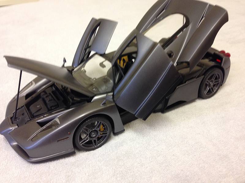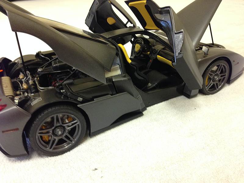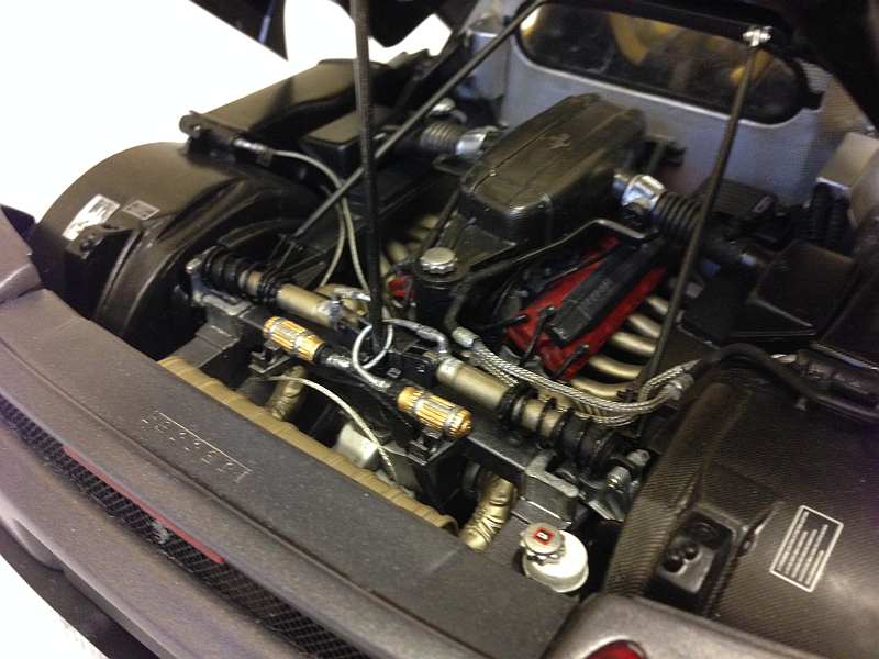 Zum Thema Türen-,Motor- & Fronthaube schliessen, er kommt in geöffneten Zustand in die Vitrine, zumal die Türen etwas schwer schliessen und das immer mit erheblichen Kraftaufwand verbunden ist. Der Übergang vom Frontbereich und "normalerweise" angeschraubten Frontspoiler wurde verspachtelt, wie gesagt, gefällt mir einfach besser so.