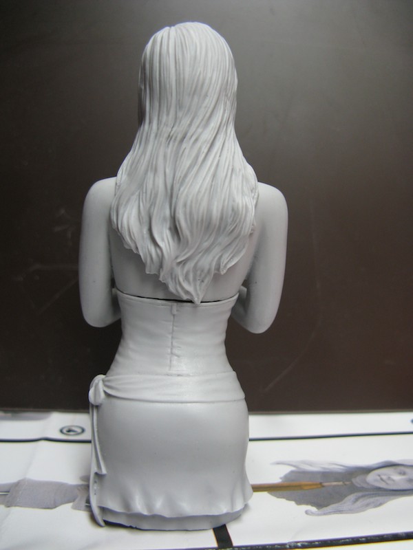nachdem ich gestern die Grundfarben mit dem Airbrush aufgetragen habe (Haut und Weiß fürs Kleid) habe ich als ersten das Gesicht bemalt.