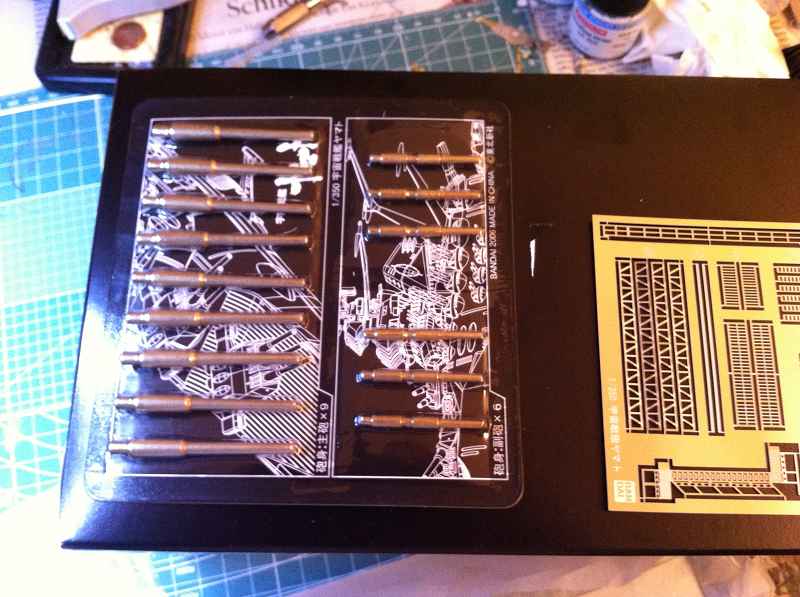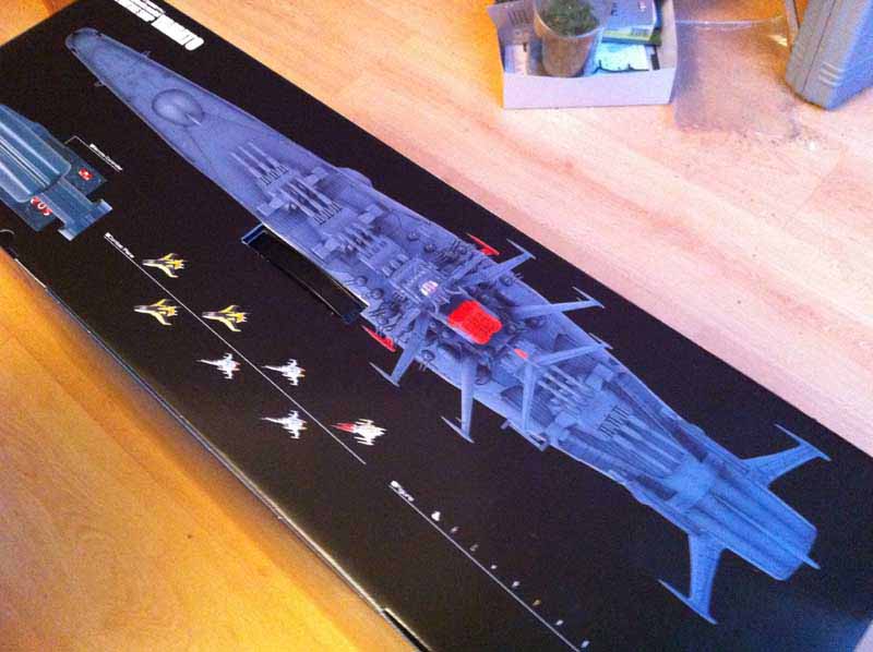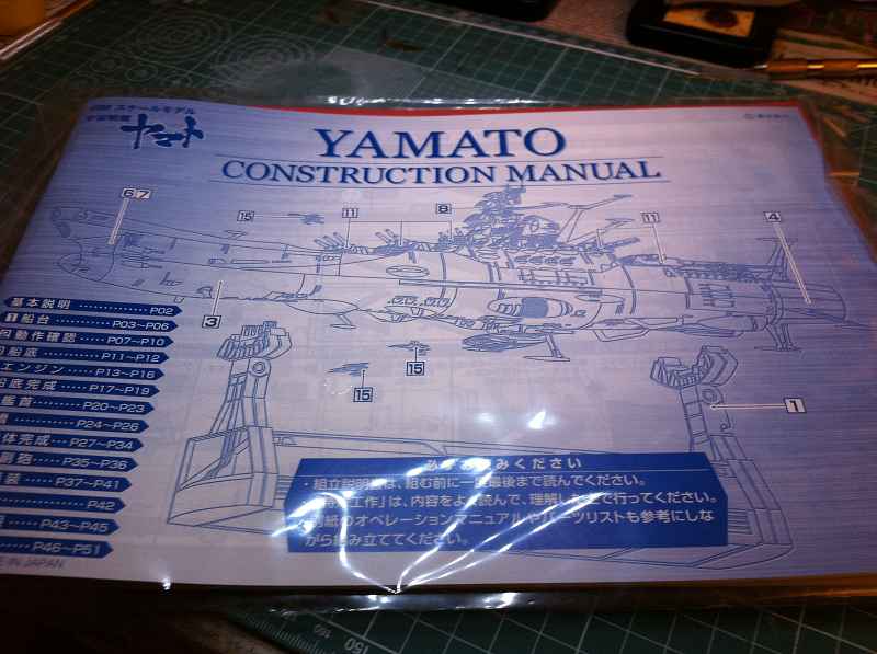 Besonderheiten: Bauanleitung nur auf japanisch aber die Bilder sind selbst erklärend. Bausatz enthält Beleuchtung, bewegliche Geschütztürme (fernbedienbar), manuell bedienbare Teile wie Anker, Tragflächen, Luken zum auf und zu machen und ein Sound Modul...