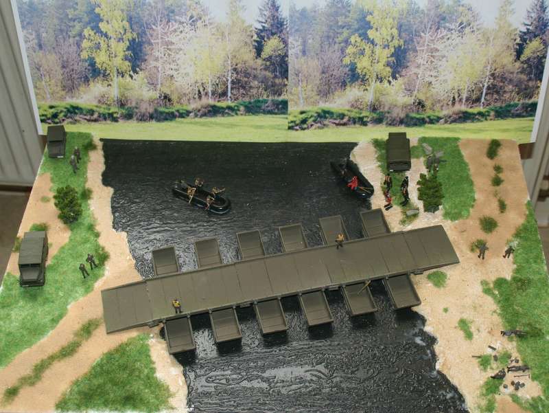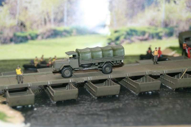 Gesamtansicht der Pontonbrücke. Die Teile waren ursprünglich Teile einer THW Brücke von Kibri.