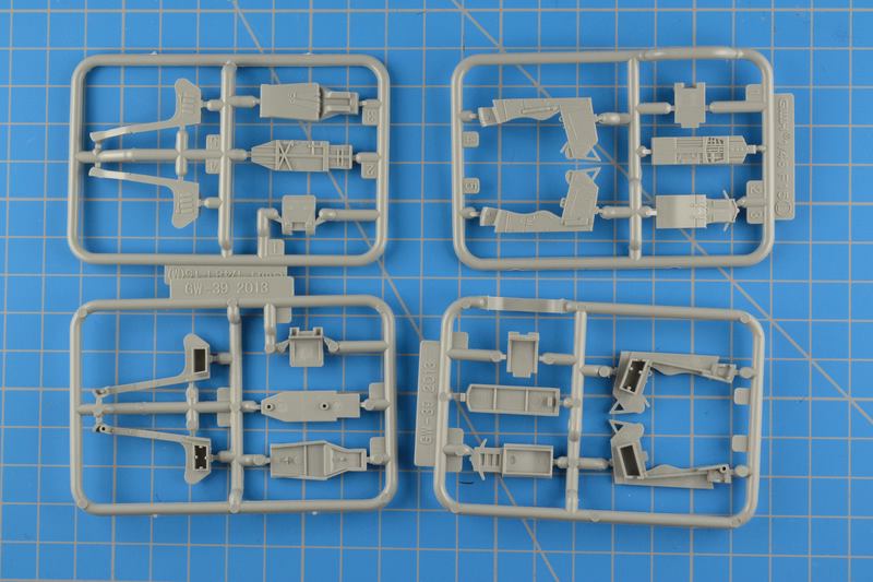 Spritzlinge: 31 graue (pro Rakete ein Spritzling) 1 Klarsicht, 1 Fotoätzplatine, 1 Klarsichtfolie