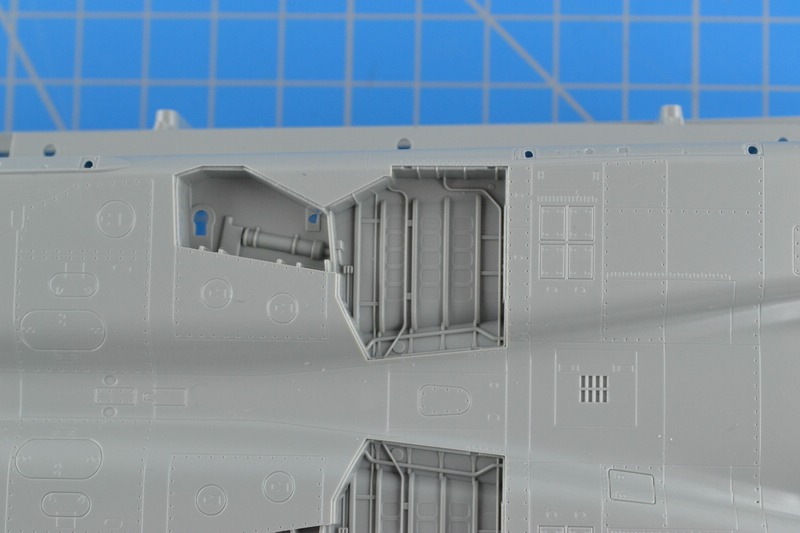 Im Bausatz sind auch die abgesenkten Lufteinlauframpen vorhanden und können angebaut werden. Beim Original waren die aber nur dann unten, wenn die Triebwerke liefen. Leider hat es GWH versäumt, entsprechende Figuren dem Bausatz beizulegen.