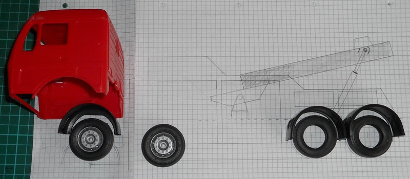 Nur eine Kleinigkeit, und im Modell jetzt vorm Lackieren zügig umgesetzt -- nachher ärgerst Du Dich, wenn das Modell auf jedem Foto mit eingeschlagenen Rädern irgendwie falsch aussieht ...