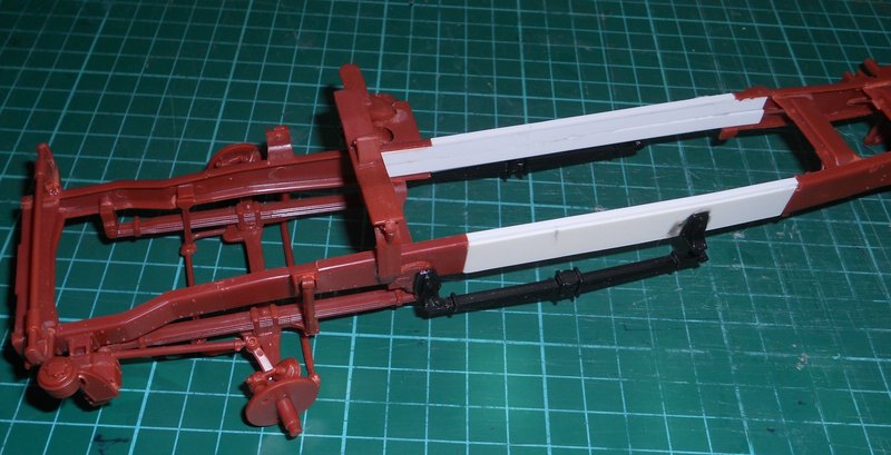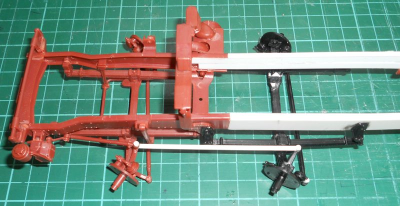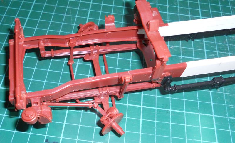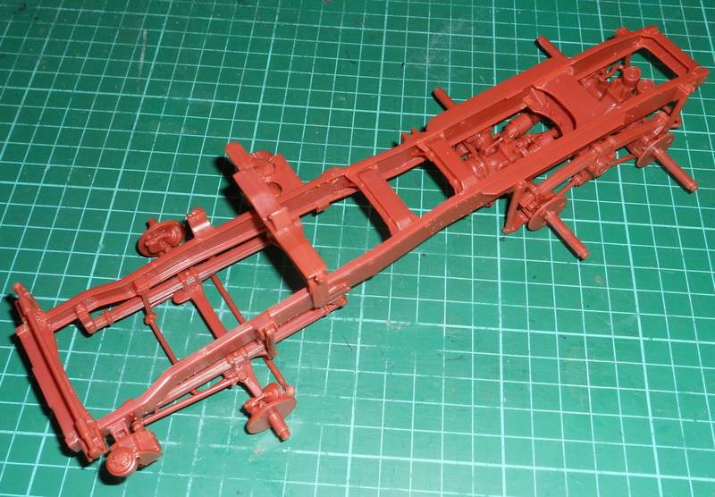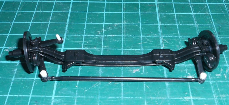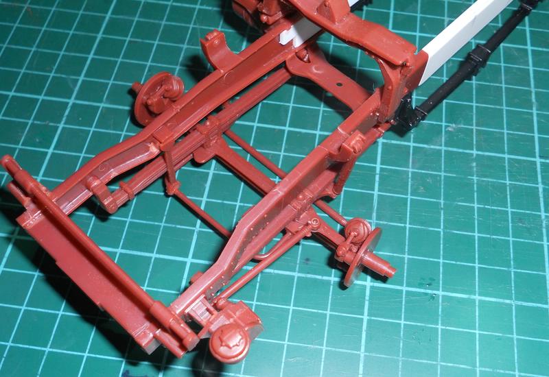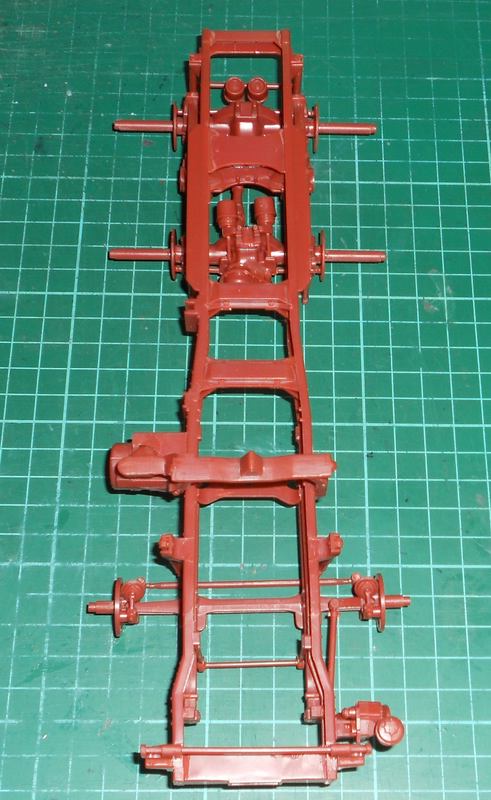 Begonnen habe ich erst einmal mit dem Zusammenbau des Fahrgestells aus dem Bausatz.