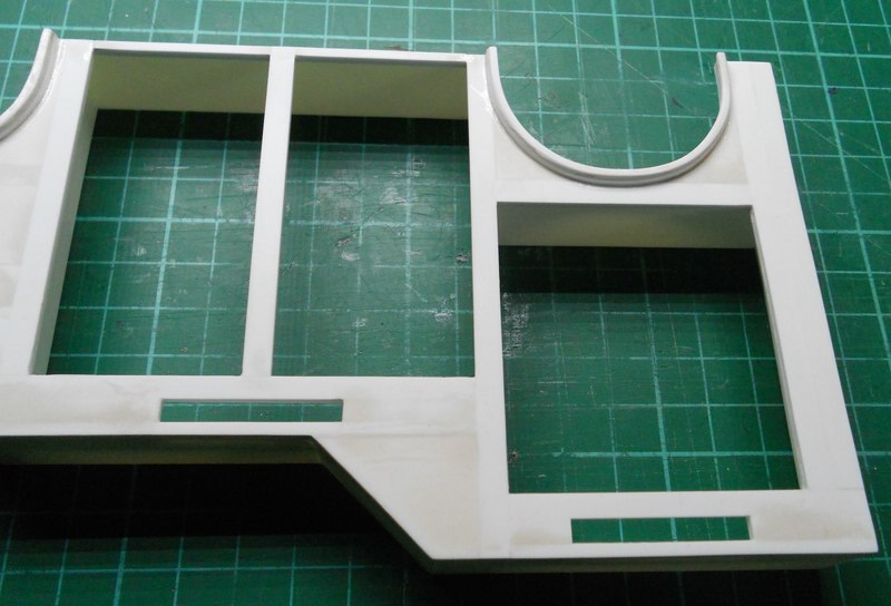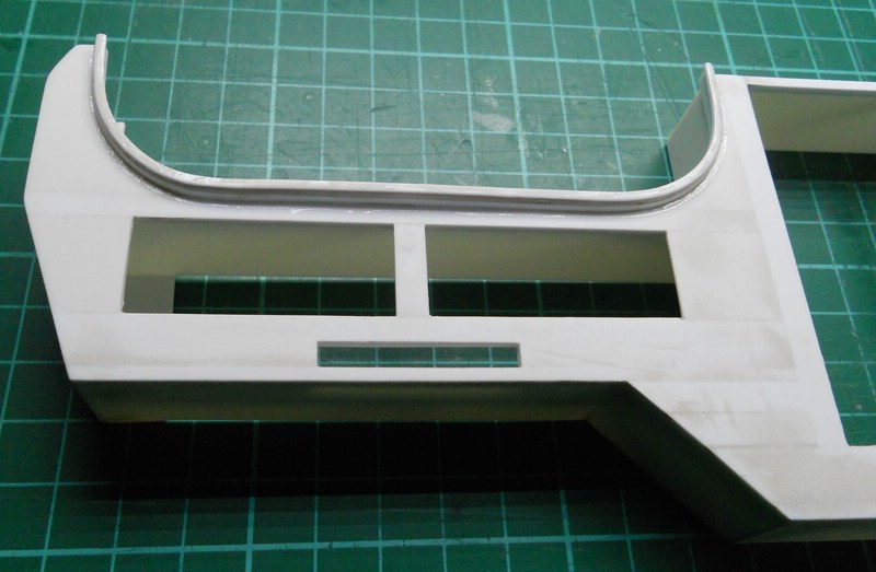 Nach dem verspachteln hab ich auch noch die Umrandung an den Seitenteilen angebracht und dann die Teile immer wieder verspachtelt und geschliffen.