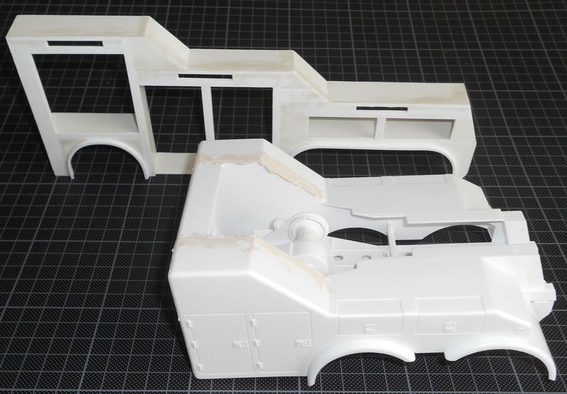Wenn man so den 'Bro'-Aufbau aus den vielen Abschlepp-Bausätzen mit dem Aufbau von 'Hubra-Fahrzeugbau' vergleicht ist deiner ein Riesenteil, dagegen sieht der 'Bro' wie eingelaufen aus. Kein Wunder da der 'Bro'-Aufbau auch schon etwas älter ist, und damals hatte man wohl nicht so viel Werkzeug und Hilfsmaterial dabei.