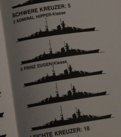 2 der Admiral Hipper-Klasse und 3 der Prinz Eugen-Klasse angeführt.