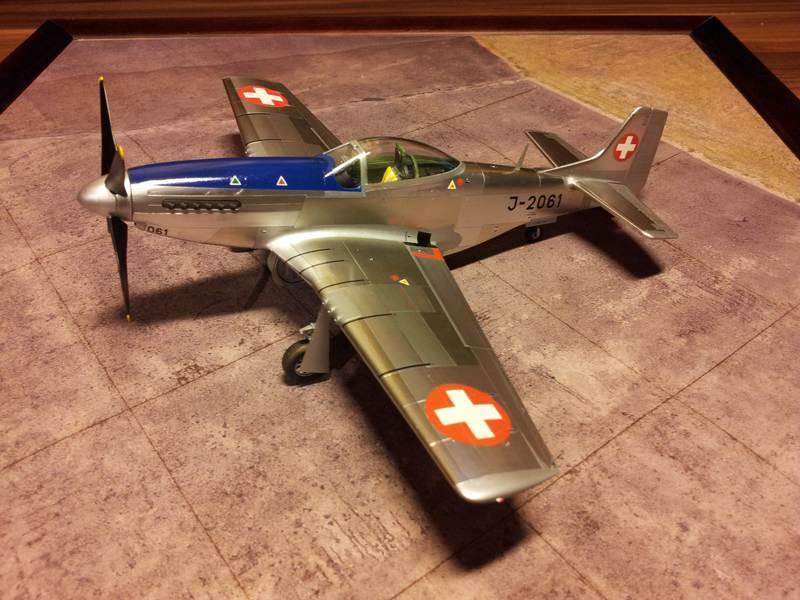 Ich zeige euch hier meine gestern fertig gewordene P-51D Mustang der Schweizer Luftwaffe. Die Mustang wurde ab 1947 von der Schweizer Luftwaffe als Übergangslösung, bis die D.H 100 Vampire ausgeliefert wurden, beschafft. Es wurden 130 Maschinen à 4000 Dollar das Stück beschafft. Diese standen ja sowieso in ganz Europa verteilt rum zu dieser Zeit. Soweit ich weiss, waren die Mustangs bis 1959 im Dienste der Eidgenossenschaft.