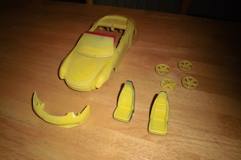 Also habe ich das Fahrzeug soweit zerlegt und alle Lichtführenden Teile, bzw. die Lichter abgeklebt und alles in gelber Farbe gebrusht: