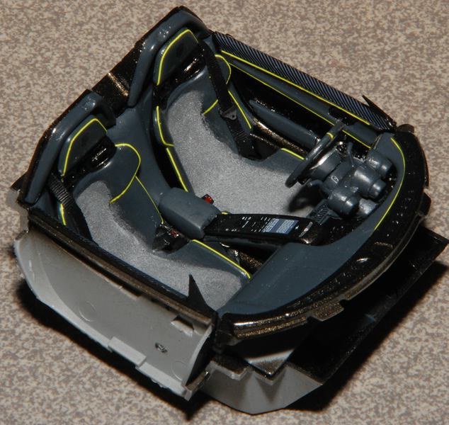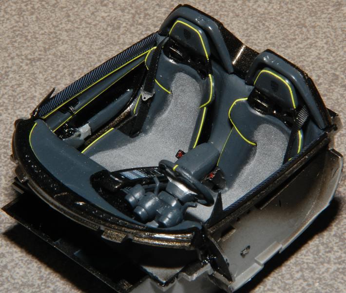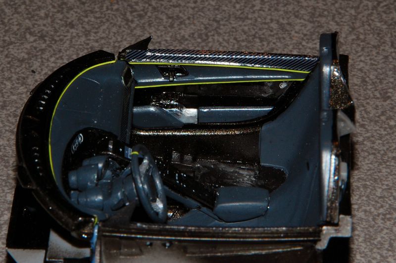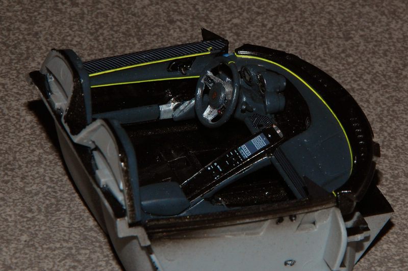 Los ging es mit dem Innenraum. Dort gab es an den Türinnenverkleidungen und am Armaturenbrett noch leuchtgelbe Decalstreifen von TL Decals.