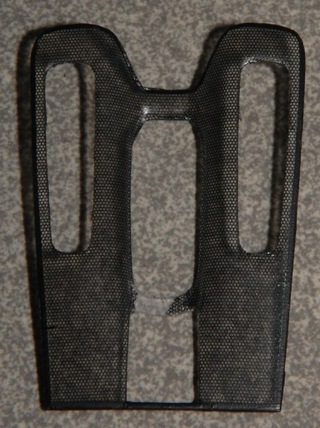 Die Optik wäre zwar nicht schlecht, die Maschengröße allerdings etwas zu groß und ob es sich passend in Form biegen und schneiden hätte lassen, wage ich zu bezweifeln. Also wurde mit CorelDraw ein Gitter mit der gleichen Maschenweite wie das Bausatzgitter gezeichnet. Ein erster Probeausdruck auf Papier war mehr als zufriedenstellend