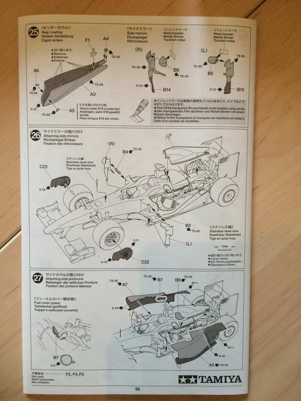 Die Anleitung: Die ANleitung erklärt in Tamiya typischer, guter Qualität und Verständlichkeit in 27 Schritten was zu tun ist.