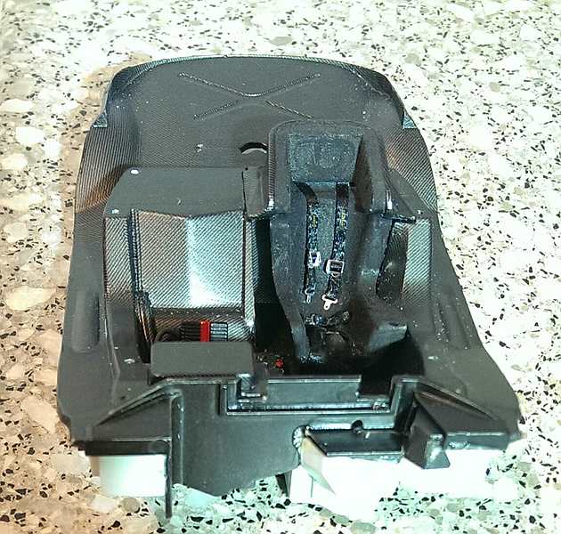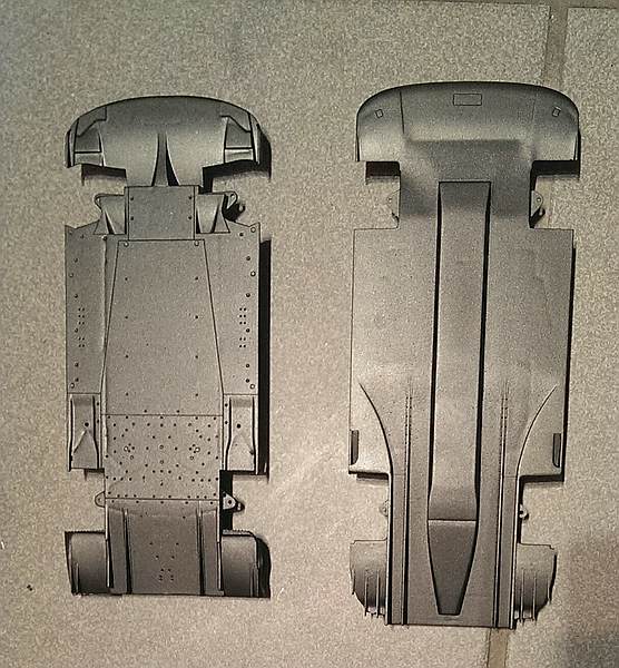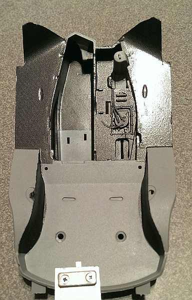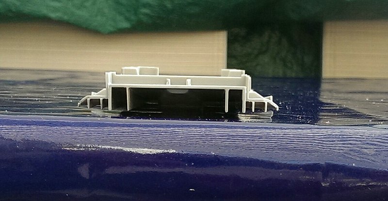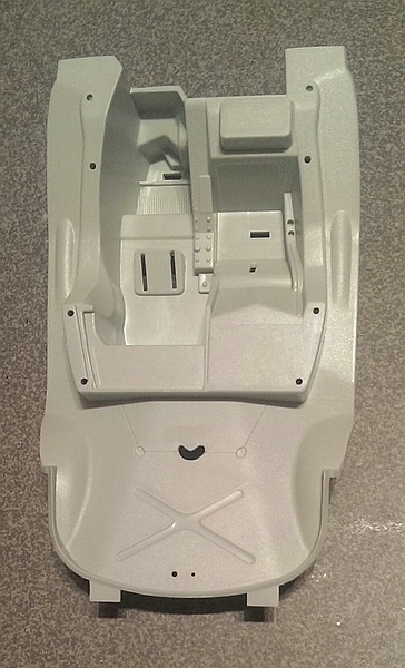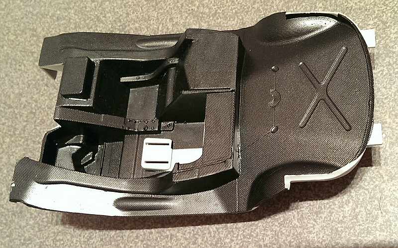 Nun zum Unterboden. Der ist eigentlich sehr schön und die Halterungen für die Finnen sind sauber dargestellt