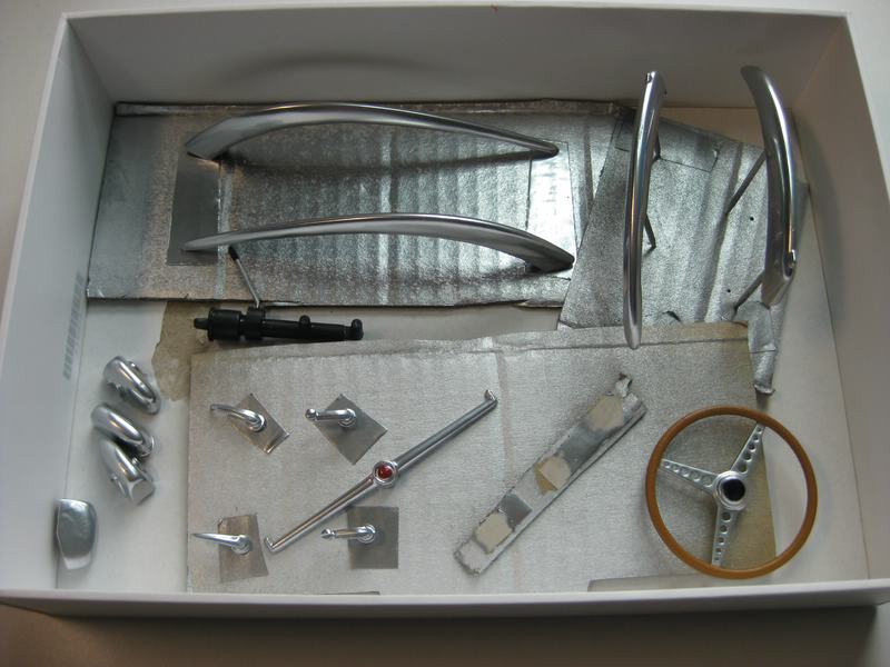 Nach dem trocknen werden die Teile mit Chromfarbe oder mit Silber übersprüht.