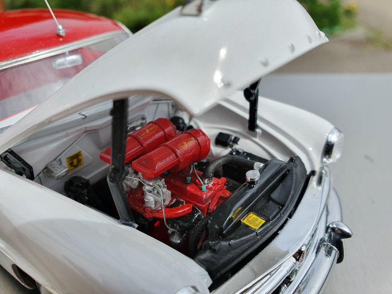 Bin mir nicht sicher, ob Moebius die Proportionen der Front so gut umgesetzt hat. Mit geschlossener Haube wirkt der Hudson auf mich nicht so stimmig. Daher habe ich mich entschlossen, die Haube offen darzustellen.