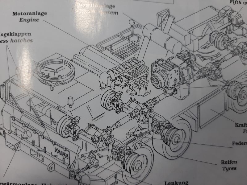 Ins Bild passt dann auch die seltsame Kröpfung der Kardanwelle von der 2ten Achse ins Getriebe.