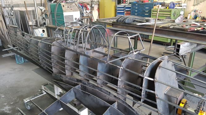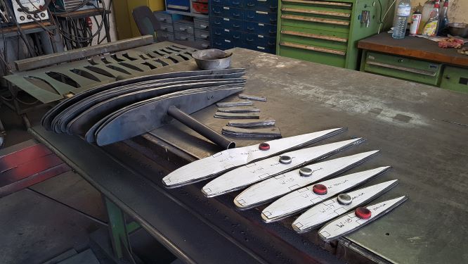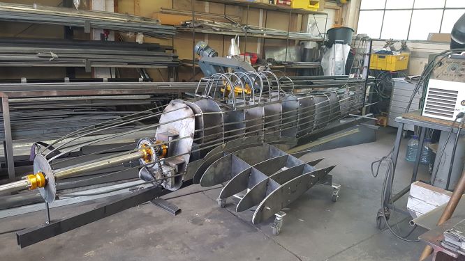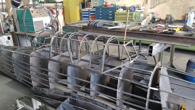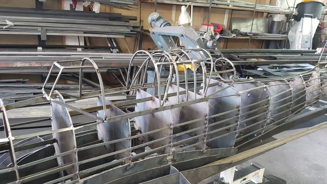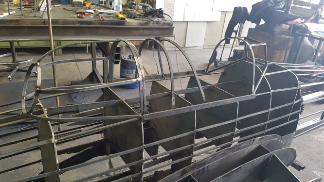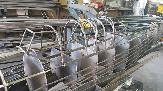 Das heißt Spanten aufzeichnen auf 4 mm Blech, mit dem Plasmaschneider rausschneiden und mit der Flex bearbeiten.