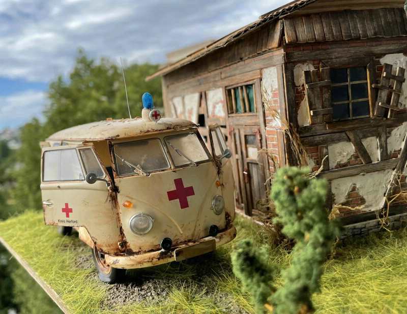 Da hat es den T1-Krankenwagen aus Herford bis in die Alpen-Republik verschlagen, und dann wird er da einfach seinem Schicksal überlassen bis er eines Tages abgewrackt wird