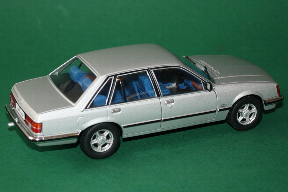 Chromstoßstangen, gerade Kante der Motorhaube und nahezu quadratische Scheinwerfer. Die Optik der ersten Serie des Senators ist korrekt wieder gegeben.