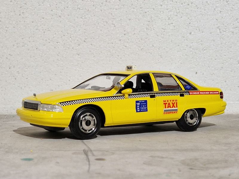 Dein Taxi sieht schon aus wie das gezeigte Vorbild, nur hat das schwarze Spiegel und keinen Suchscheinwerfer. Ist zwar ganz schön viel Gelb, aber so waren die damals und ist somit auch zu 100% Authentisch. Nicht umsonst sagte man dazu "Yellow Car" . Gut gemacht, auch aus einem Snap-Kit kann man was machen wie man sieht