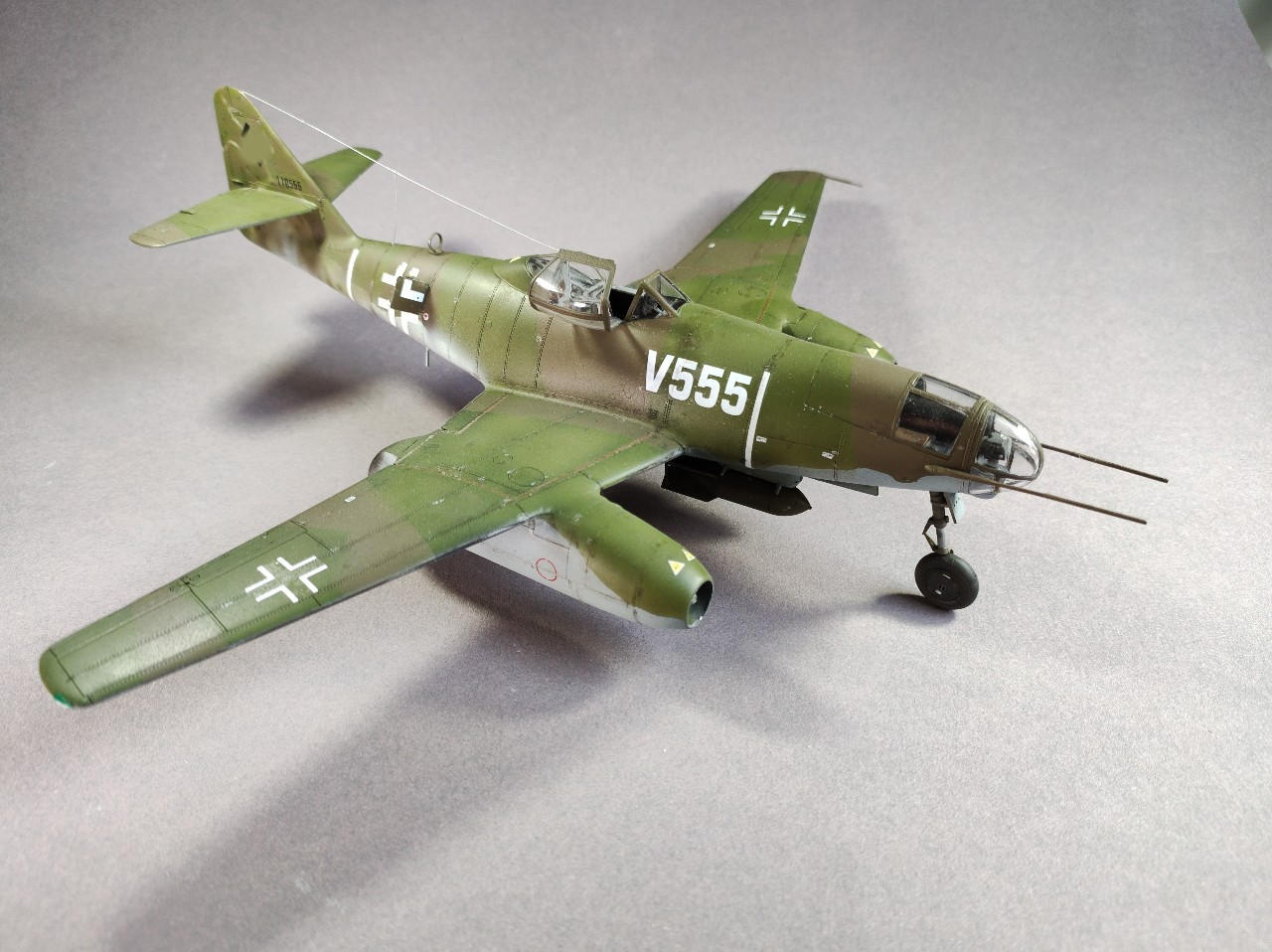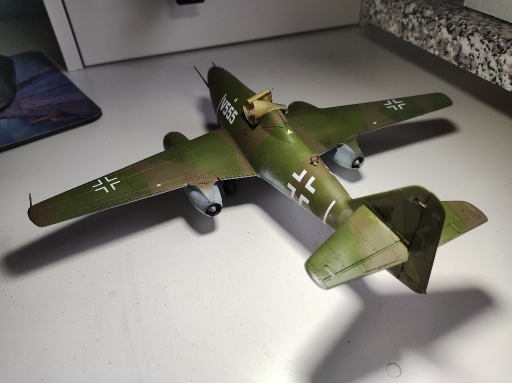 Nun aber zu den Decals. Ich entschied mich für die V555, welche beim Erprobungskommando Nowotny im Einsatz war und zunächst auf dem Fliegerhorst Lechfeld, kurz vor Kriegsende aber noch mach Weimar gebracht wurde, wo sie den Amerikanern in die Hände fiel (hier gibt's einige Bilder)