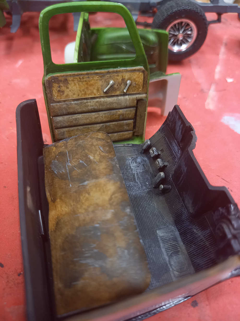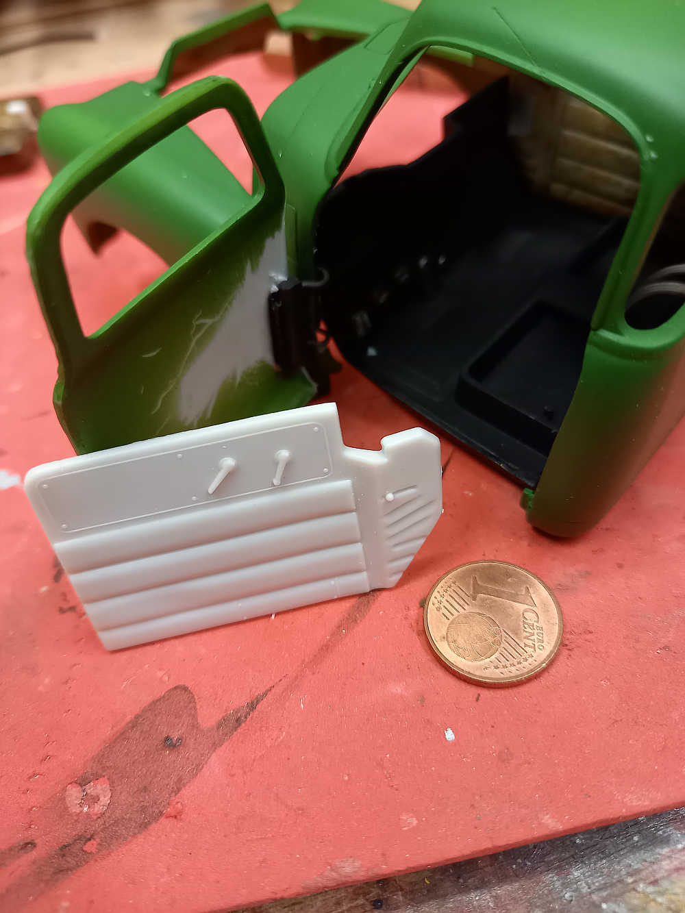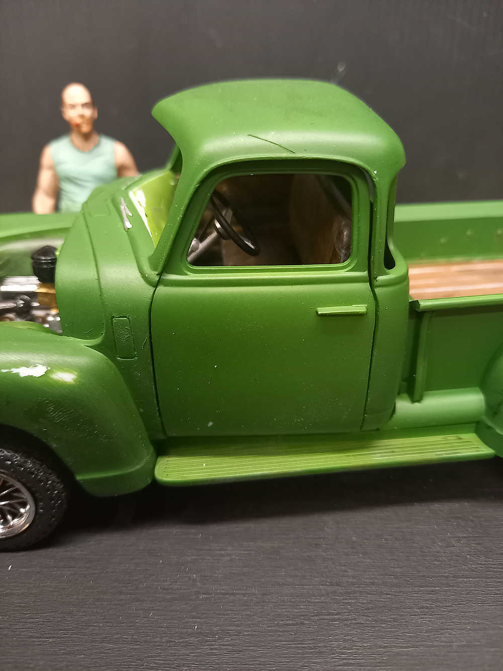 Das Auf und Zu geht ja schonmal gut, nur die Türpassung im geschlossenen Zustand passt nicht richtig, die Tür steht dann zu weit innen, erkennt man ganz deutlich am Rahmen. Da ich aber denke das dein Plan ist den Chevy auf dem Dio mit offener Tür zu platzieren ist das erstmal kein Problem, ist ja kein Spielzeug.