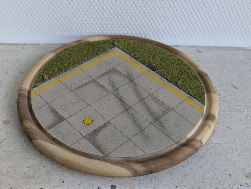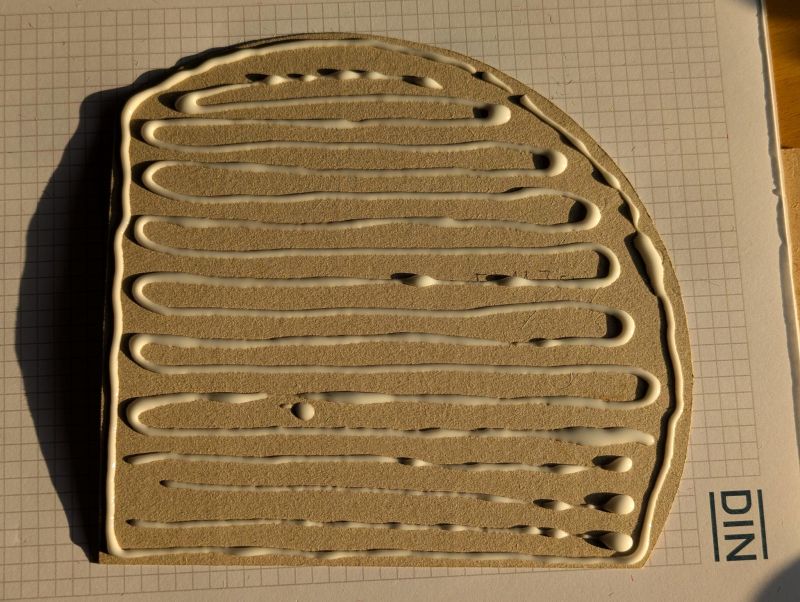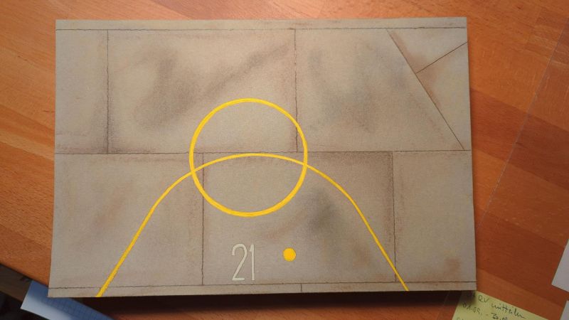 Geschickt ist, jetzt bereits die Fläche mit mattem Klarlack zu überziehen, damit vom Karton später nicht doch Fusseln gezogen