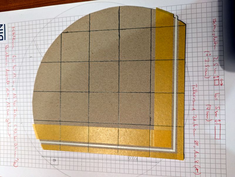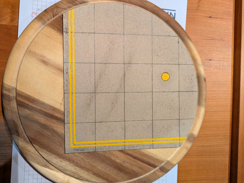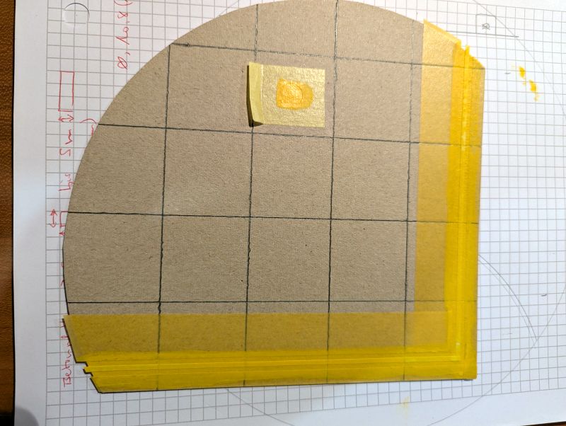 Mit passendem Maskiertape wird die Lackierung der gelben Linien vorbereitet und dann noch eine kreisrunde Markierung für einen Erdungspunkt ergänzt.
