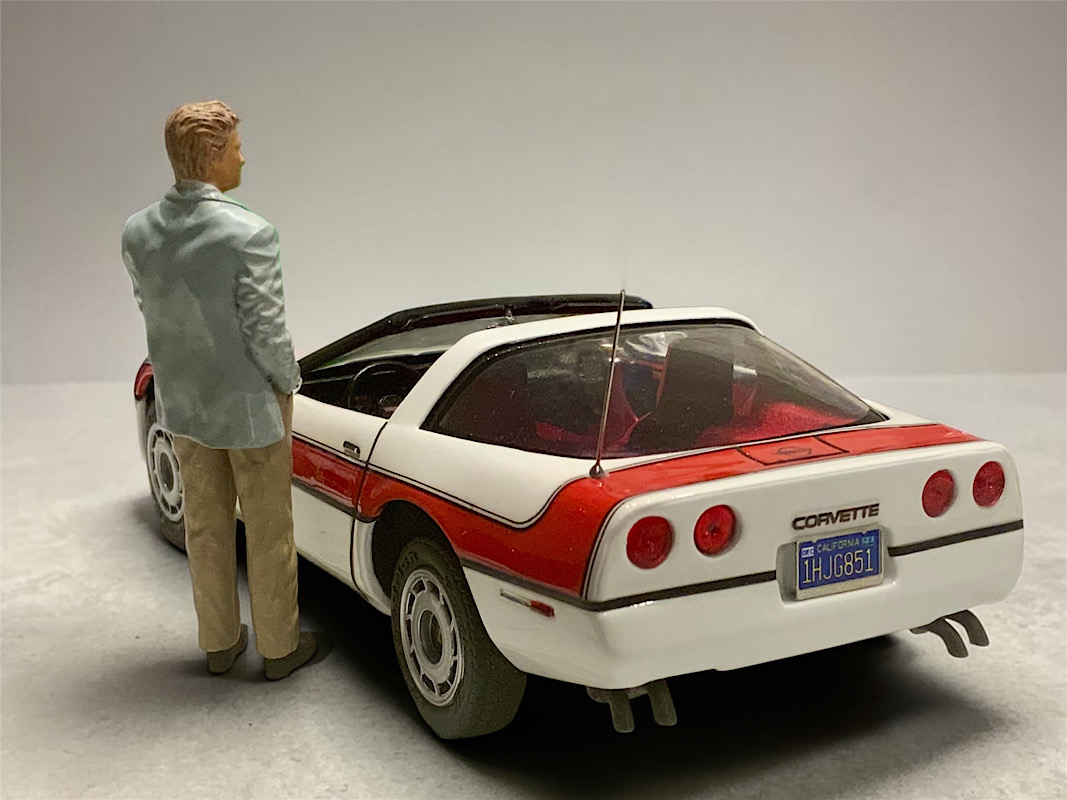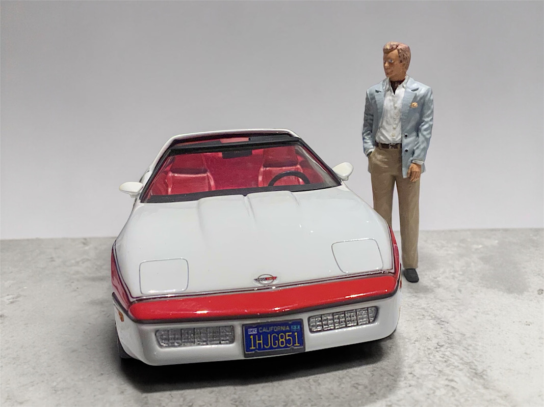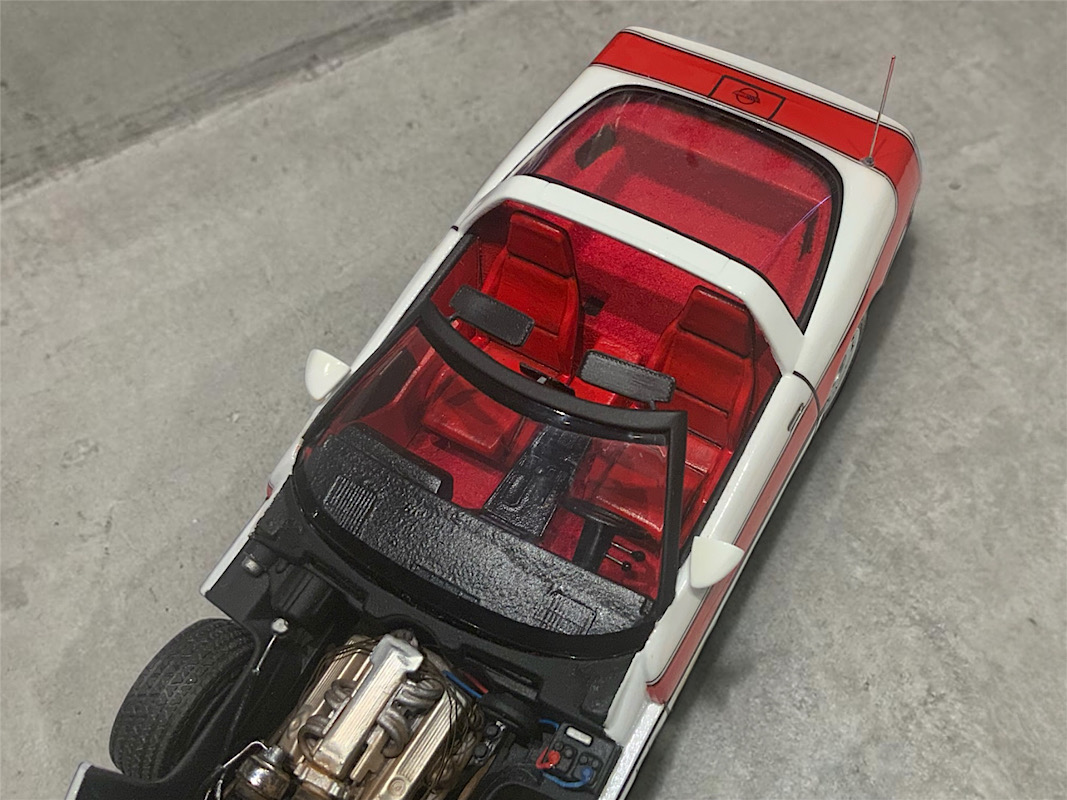 Sportliche Farbkombi. Sehr detaiiertes Cockpit. Die Figur wirkt was groß oder der Wagen ist real ein kleiner Sportwagen.